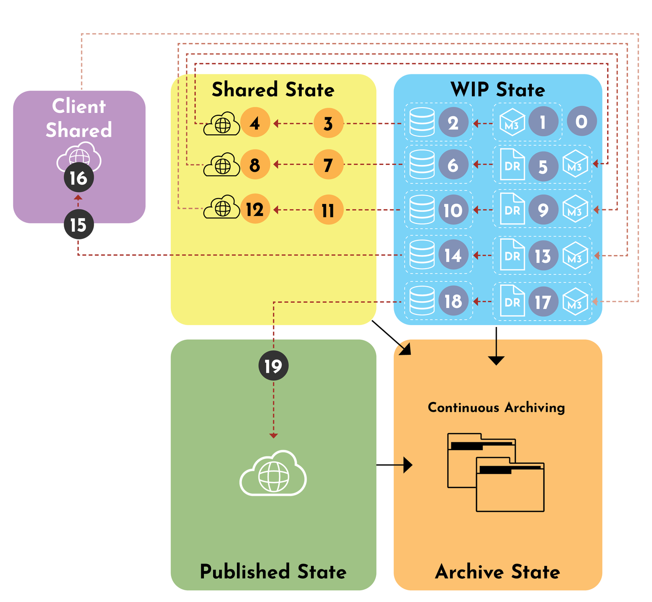| 13 | Drawing is transitioned to a shared status for review and acceptance by the appointing party. This is where the drawing may be shared to the client CDE | Client Shared | P03 | S5 | |||